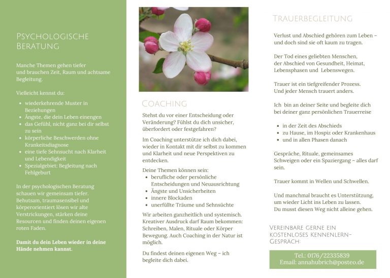 Manchmal jedoch ist die Trauer so schwer oder wird von weiteren Themen begleitet, dass sie uns daran hindert, wieder Vertrauen, Zuversicht und Lebensfreude zu spüren. Gerade dann ist es wichtig, sich Unterstützung zu holen – um wieder Licht in die Dunkelheit zu lassen.